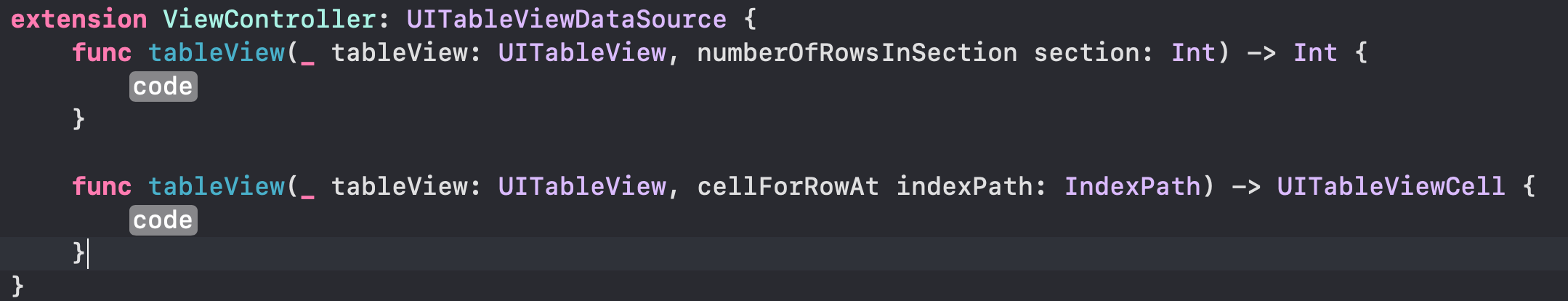 데이터를 관리하고, table view에 대한 cell을 제공하기 위해 Object에서 채택하는 메소드들 입니다.