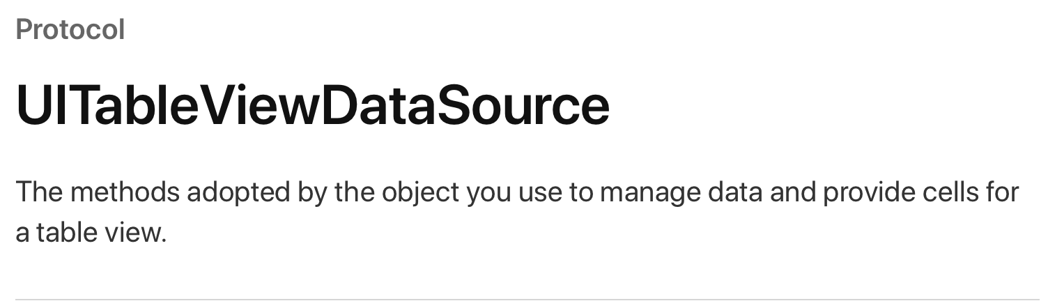 우선 이 UITableViewDataSource가 무엇을 하는 녀석인지 먼저 알아보겠습니다.