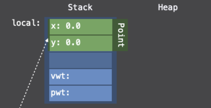 Point의 같은 경우에는 Heap allocation이 필요 없기 때문에 이러한 그림이 나오겠고, 그냥 argument의 값을 복사하여 local existential container의 valueBuffer에 넣을 수 있겠죠.