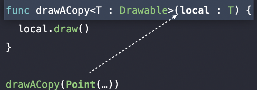 Swift는 여기서 코드를 Specialization하기 위해서 call-site의 타입을 추론할 수 있어야 합니다. 여기서는 point가 Point로 초기화 되어있으니 Swift는 이를 보고 타입 추론이 가능해집니다.