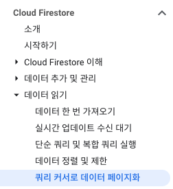 Firebase 공식 문서에서는 쿼리 커서로 데이터 페이지화 라는 섹션에서 구현 방법을 확인할 수 있습니다.