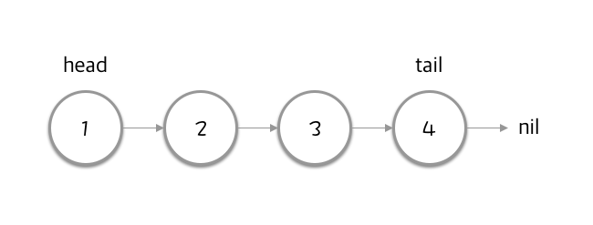 Node는 값을 가질 수 있고, 또한 다음 Node와의 Reference를 가집니다. 만약 Reference의 값이 nil 이라면 이 Node가 마지막이라는 의미가 됩니다.